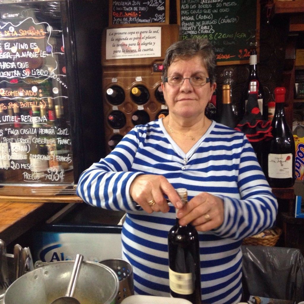 Y como no es bueno beber con el estómago vacío, los vinos van acompañados de alguna de las tapas que «la Jose», el alma mater de La Portada (a la que podéis ver en las fotos), prepara diariamente para alegría de quienes acuden allí. Algunas de ellas ya son protagonistas de un día fijo de la semana, como los Huevos con Pisto que ofrecen los lunes con cualquier consumición. Y otras, son un clásico de cada temporada: sopas de ajo, patatas revolconas, tortilla de picadillo y, por supuesto, los torreznos.